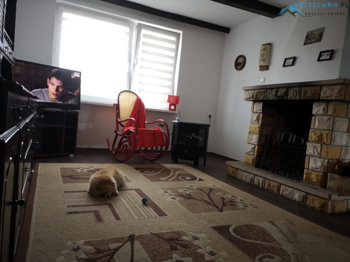 Na piętrze salon z kominkiem, TV ,rozkładany narożnik, w pełni wyposażona kuchnia, sypialnia dla 2 osób,taras zadaszony oraz odkryty.