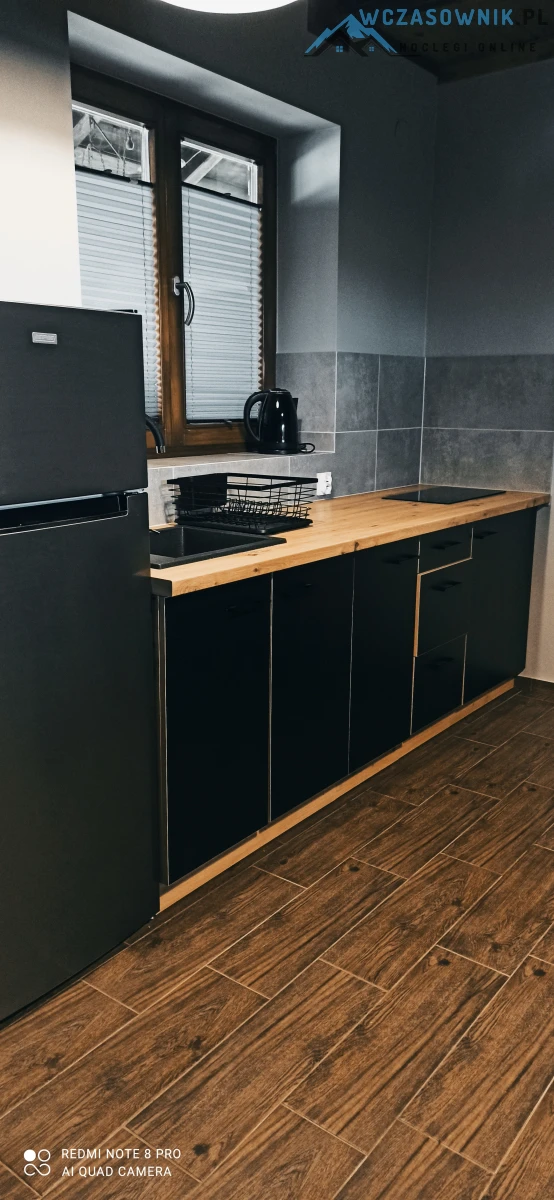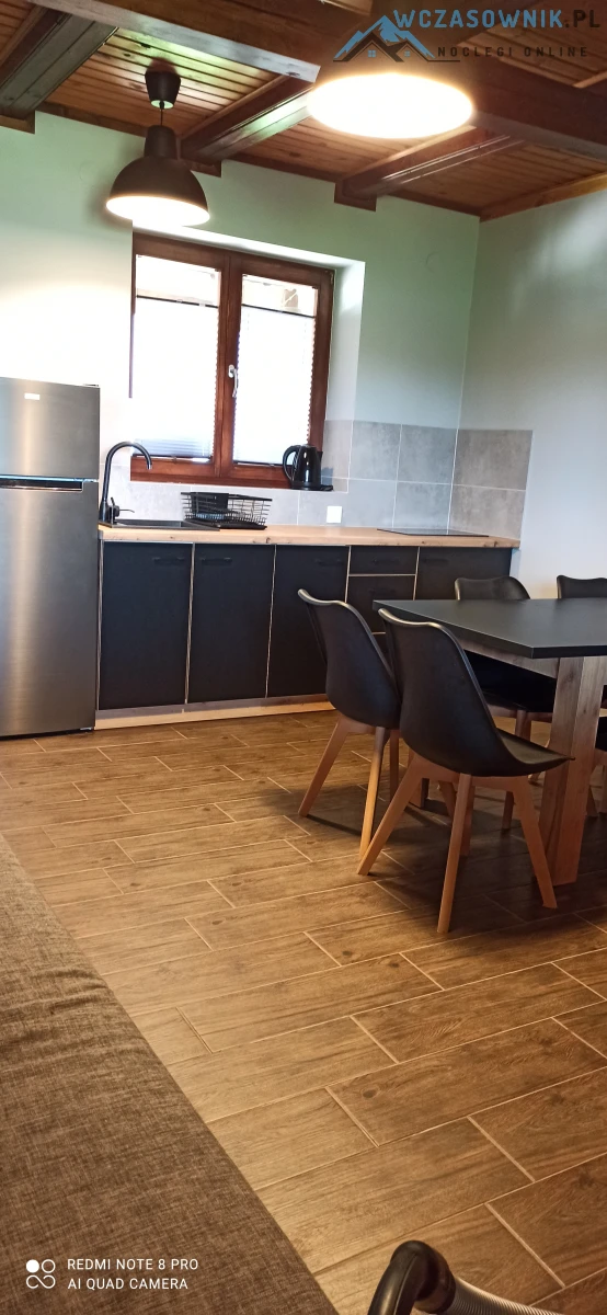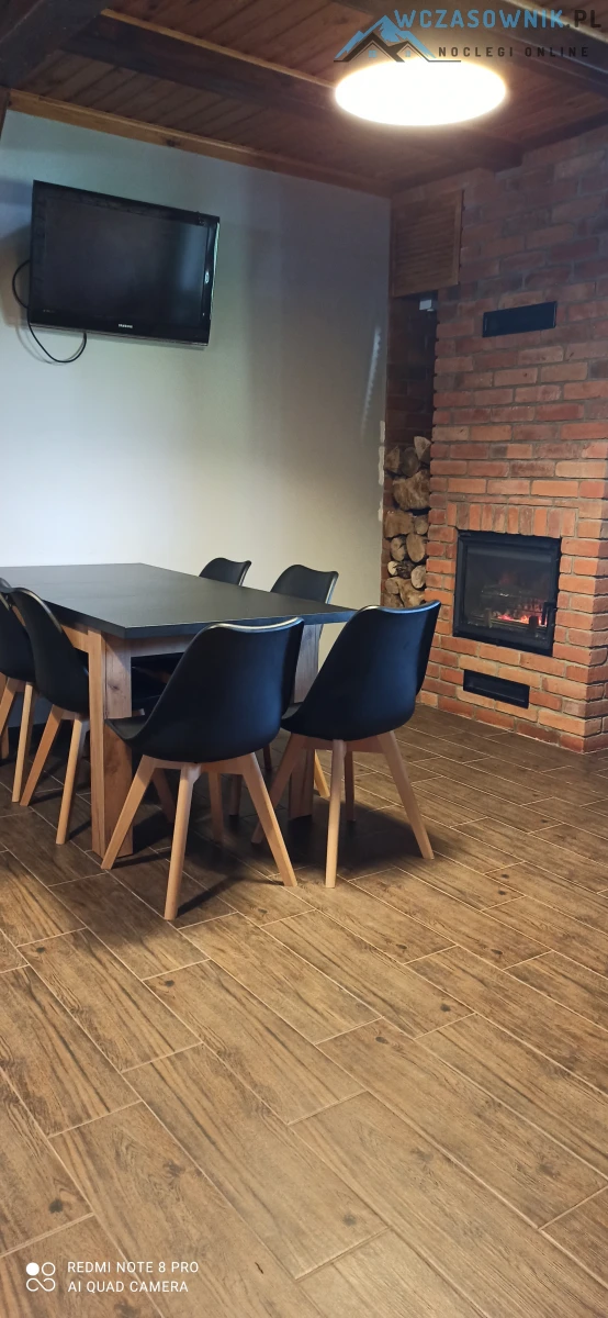 Apartament 10 osobowy posiada dwie sypialnie, dwie łazienki, salon z kominkiem i aneksem kuxhennym.