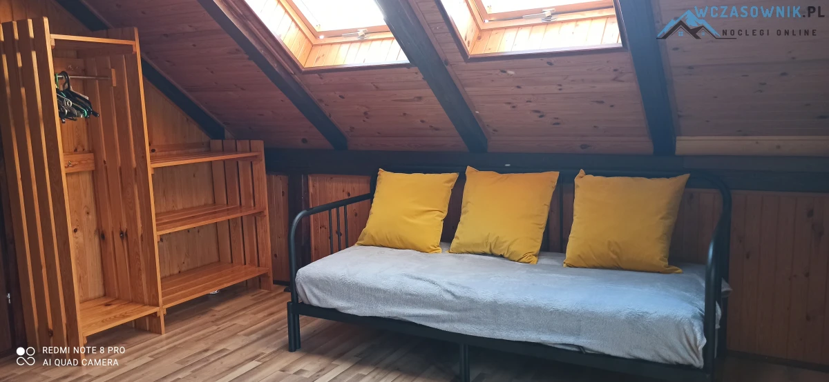 Domki i apartament 6 osobowy są piętrowe i mają jedna sypialnie dla 4 osób oraz salon z aneksem kuchennym i łazienkę.